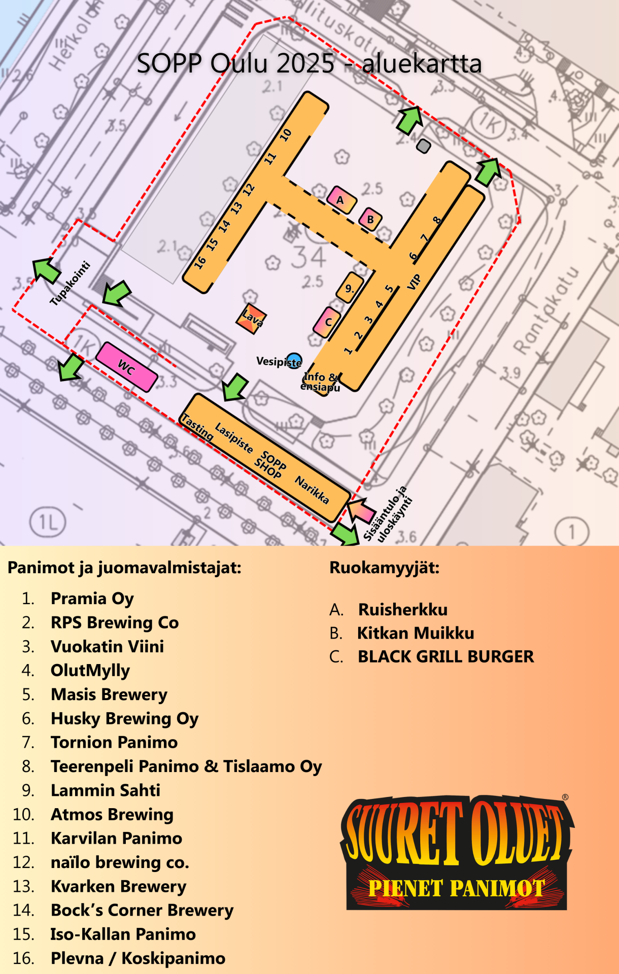 Miltä kuulostaisi iso teltta, pienpanimofestarit, juomat oikeista laseista, rento tunnelma ja laaja juomavalikoima? SOPP eli Suuret Oluet – Pienet Panimot on vastaus tähän kaikkeen. Ensimmäisen kerran Suuret Oluet – Pienet Panimot järjestettiin Oulussa vuonna 2017. Tervetuloa viihtymään!
