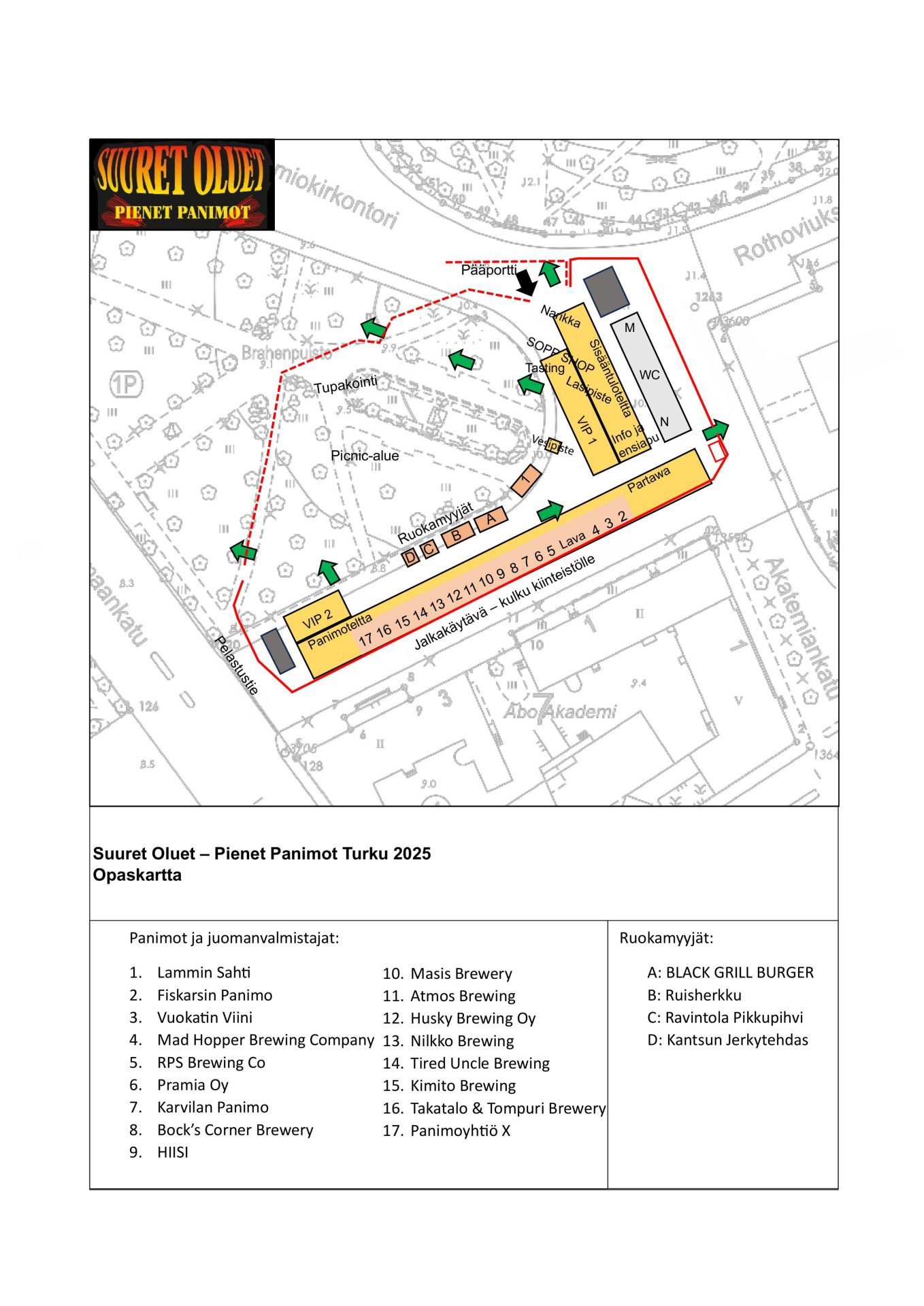Tapahtumassa on mukana seuraavat ruokamyyjät